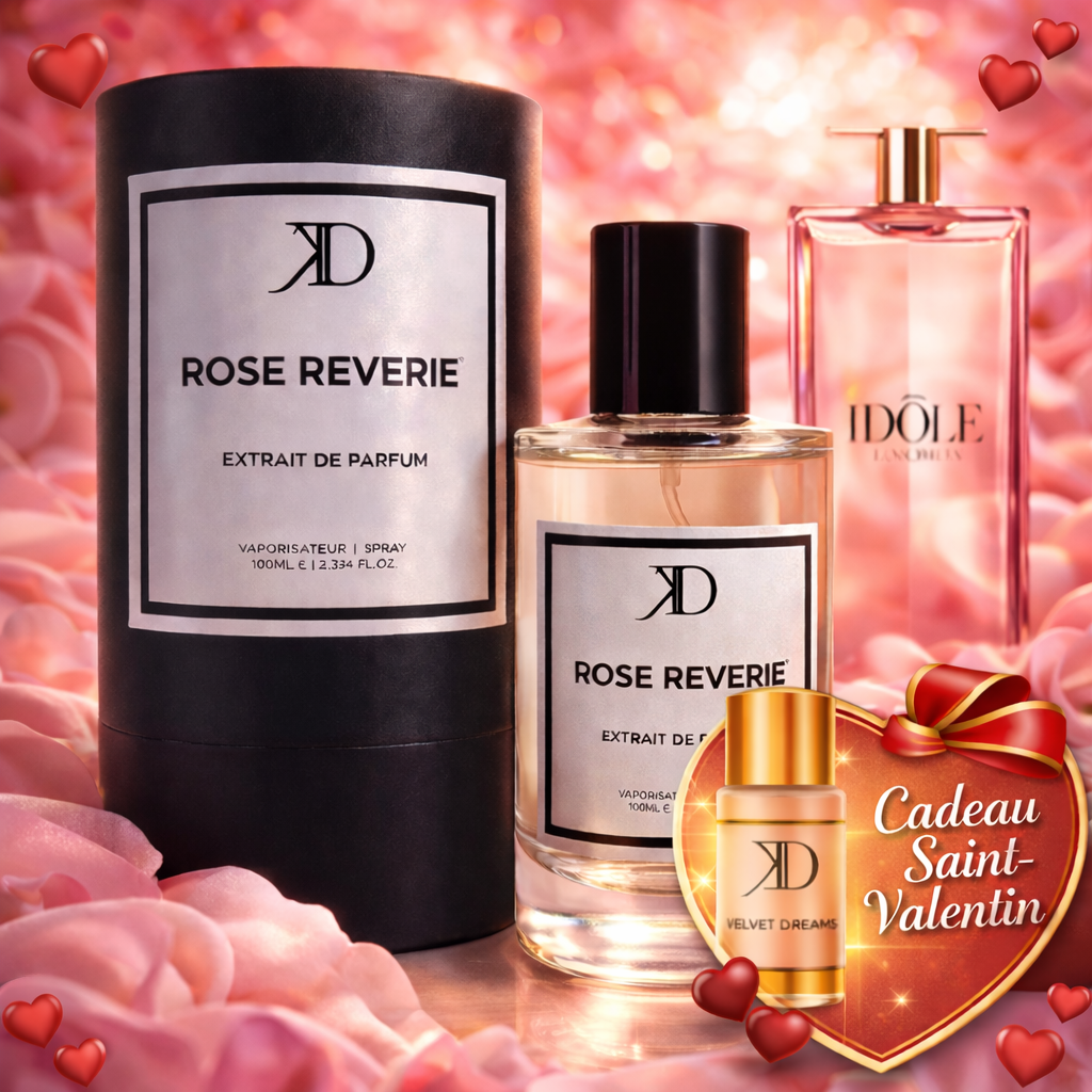 Découvrez Rose Reverie de la Collection KD, une fragrance enchanteresse inspirée par l'iconique Idôle de Lancôme. Ce parfum exquis est élaboré avec une concentration exceptionnelle de 24% des huiles essentielles les plus fines, garantissant une intensité et une profondeur incomparables.